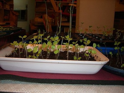 不管是小白菜或大白菜,種子伸出幼芽之後,將種子裡的子葉挺出來,問題是為何挺得這麼高呢?想半天只有一個答案:因為在室內,只有下午從窗外斜照一點日光,因此所有的種子都把脖子伸得老長…….