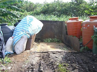 最後堆置區旁有個「過濾裝置」,接近熟成的堆肥經過裝置的篩選,還沒有腐化的貝殼、玉米心、椰子殼、骨頭等材料,就回頭重新加入初堆的行列。因此收集回來的廚餘,不管是玻璃碎片還是塑膠袋,通通不必理會,全部進行堆置之後,最後一道工序再挑選過濾出來。