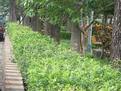 大約走路五分鐘,就走到這個小公園,天色雖然陰沉,還沒有下雨的意思,這樣的天氣最適合來採集果實,只是數量沒有我想像的多。公園裡有人在活動,我埋頭專心採集,但耳朵裡還是飄進某個女士說話的聲音,忽然聽得很明白的一句話進入耳中:「你採那個用來做什麼?」我很確定她應該是對我說的,不過我沒抬頭就回答她:「用來種的。」「要種的就好,如果要吃的就不行,我是不知道那是什麼,但是前幾天剛噴過藥,要種的就沒關係。」難怪七里香的葉片上有白色粉狀的東西,我以為是灰塵,原來是藥粉。「這是七里香的種籽。」「七里香哦?我是不知道啦,這樣就可以種了哦。」然後聲音的主人又繼續與身旁的人說話,我到此才抬頭看,原來有兩女一男,在一座水泥花架下,好像在做體操似的一邊活動筋骨一邊聊天。