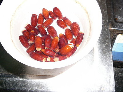 「黑葉」荔枝也泡過幾顆,而且泡水一週左右就裂核,好像要長出芽來了,我匆忙將它們埋進土裡,不過心裡不是很願意它們真的發芽長成小苗,因為家裡沒地方安置小苗盆,故意放在牆腳亂澆水,有一點存心讓它們夭折的味道。