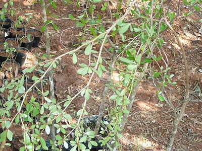到了育苗區馬上發現多了四盆植物,看盆面的土已經長青苔,細細的枝條、小小的綠葉,我一時沒認出是什麼植物,還在猜是不是貓爸回花蓮帶了果樹苗來?可是完全認不得是什麼果樹。