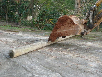 電線桿沒法一路用怪手推上我們的高台,最後還是要用鋼索吊上去。