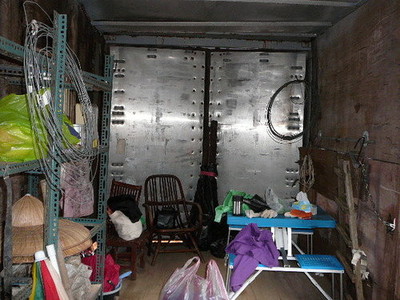 123,我們先去鄉公所問一些事情,「五號」先在貨櫃屋裡打掃出三大包的垃圾,然後將一些還可以利用的水電零件收拾整齊。這天也買了一條鐵鍊和號碼鎖,開始將工具放進去收藏。
