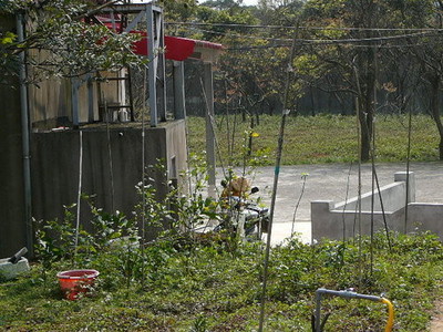 吃完了麵線,決定先到甲地的樹林探望果樹苗,所以我從貨櫃屋出來直直向前方走去,沒想到走了幾步卻聽到有人叫我,原來是三老院的95歲阿媽,看她頭戴斗笠遮陽,正站在廣場下的路上喊我,我趕緊急奔到她跟前。