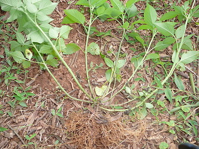 我原來為了讓土層涵水,所以菜畦面的雜草只用剪刀修剪,讓雜草的根系依然存活。但是只要下一場小雨,這些根系馬上茁壯成長,尤其是「咸豐草」這種植物,你將它齊土面剪斷的草莖,竟然幾天內同時側生四、五枝莖條,於是原本一枝草變成四、五倍叢生,很快又逼得人必須再次除草。