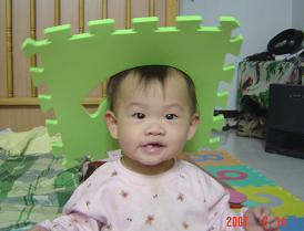 2007.02.14 數字巧拼用處多多 其中一個就是拿來戴在頭上 看到沒?我是夏威夷女郎 P.S:這款新玩法只有出現一天,真是善變的女童啊!