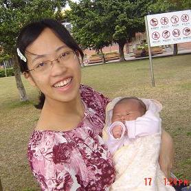 2006.3.17.捷運公園 看,媽媽的黑眼圈都跑出來了 蛋糕被媽媽抱著 還露出不爽的表情 為何拍攝角度歪歪地??? 那得問小蛋糕的阿姨...拍照技術有待加強