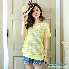 OB嚴選0508新品 透視藝術~菱形格紋洞洞嚴選針織長版飛鼠袖上衣?4色』
