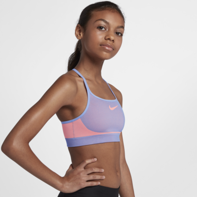 Nike Seamless 大童 (女童) 運動內衣採用細肩帶設計,進行低強度活動時不會滑動,可提供良好支撐力,包覆身體的無縫設計則可帶來全天舒適的穿著感受。