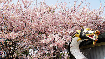 來到龍頭山公園此處櫻花不多龍頭山之象徵久違的藍天與晴空白櫻綠樹陽光下的櫻花似乎更為明豔採蜜選美花鐘鐘閣各有獨特...