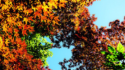 這天比之前更早起來拍紅葉(把握最美的時刻) 朝陽遲起,白露未晞 慢慢往階道下方走去 據說這裡的紫葉槭...