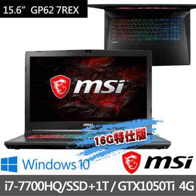 【msi微星】GP62 7REX-1058TW 15.6吋 i7-7700HQ GTX1050Ti WIN10(16G特仕版) 非常的吸引我的關注。走過路過這裡,