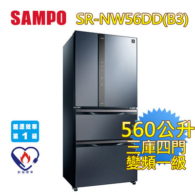 最近在購物網上看到【神回饋送DC扇SAMPO聲寶】AIE智慧節能 560升 1級變頻四門玻璃冰箱(SR-NW56DD-B3) ,