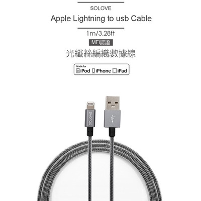 【SOLOVE】MFi認證 Apple Lightning 8pin 光纖絲編織充電線 鋁合金 傳輸線(手機線) 討論,推薦,開箱,CP值,熱賣,團購,便宜,優惠,介紹,排行,精選,特價,周年慶,體驗,限時