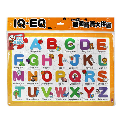 商品訊息描述玩拼圖,學寫字!IQEQ Food超人 聰明寶寶大拼圖-認識ABC26片拼圖一個,認識ABC,每個字母下面都有相應的單詞和單詞的小插圖,可以邊學英文邊拼圖!拚完拼圖還可以翻到背面,有字母的大小寫、筆劃順序, 能夠發展IQ,鍛鍊EQ!● 拼拼圖增加專注力在玩拼圖的同時,增加專注力,讓孩子在玩樂中學習,經歷挫折與完成後的成就感,讓孩子擁有更佳的抗壓性! ●奠定書寫能力從小塊拼圖到完整的大圖片,讓孩子了解從局部到全部的概念,訓練空間關係,更可以訓練孩子的手眼協調,奠定孩子將來書寫能力。●學會寫ABC正面有每個字母相應的單詞,背面還有英文字母的大小寫,玩拼圖的同時還能學會ABC的筆劃順序!更可以用白板在背面練習書寫!