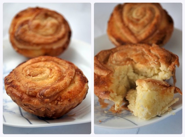 椰子塔拿在手裡時,莫名湧上一股悸動。漂亮的一個椰子塔,內含豐富的新鮮椰絲,白白甜甜的,加上酥脆的外皮,品嚐起來外干內濕,很是好滋味。