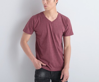 MIT美式休閒V領素T (酒紅) 237 的產品介紹在下面,