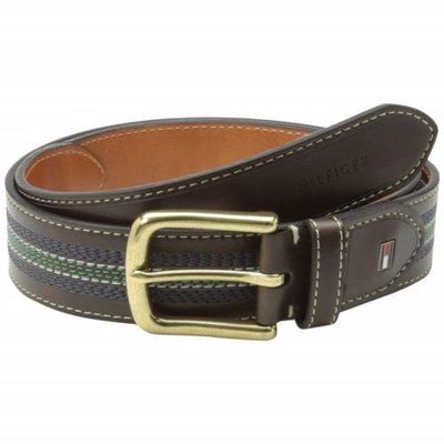 [分享推薦]Tommy Hilfiger 2014男時尚休閒藍綠壓線深棕色皮帶(預購)