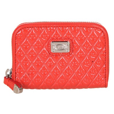 熱賣推薦分享~【TODS】鐵牌菱格紋漆亮皮拉鍊零錢包(橘紅)