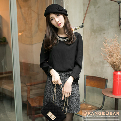 [分享推薦]0211新品 輕曳柔美~雪紡面料領口水鑽珠珠裝飾澎澎袖上衣.2色