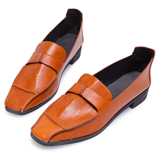 心得分享推薦~【Ann梨花安】方頭皮革車線 素面樂福鞋 紳士皮帶(棕)