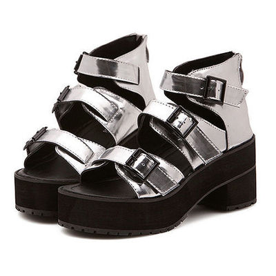 於是我參考了其他網友。DearBaby。真皮一字金屬釦環亮面粗跟涼鞋(銀色)-預購的推薦開箱文及心得分享!
