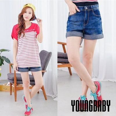 [開箱心得]【YOUNGBABY】個性紅色口袋魔術手套牛仔短褲