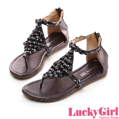 LuckyGirl-閃耀一夏~T字飽滿水鑽涼鞋-灰