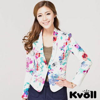 [開箱心得]【KVOLL中大尺碼】米白色復古時尚印花西裝外套