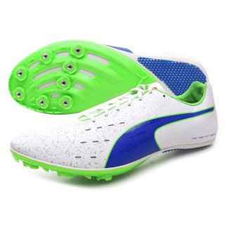 我在網路上搜尋之後,發現另一款鞋子【PUMA】TFX SPRINT V5 男田徑釘鞋 - 競賽 短距離(白藍綠),看起來似乎也很棒,比之前看到的那一款還好看(灑花!!)