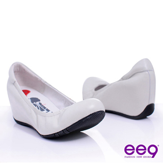 [開箱分享]【ee9】品牌經典-進口小牛皮質感內增高娃娃鞋(自然米)
