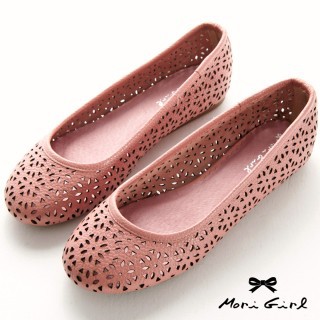 反正我做了很多功課,每天研究到三更半夜,最後經過種種的考慮,我才下手買【Mori girl】洞悉春光.激光鏤空荔枝紋牛皮娃娃鞋(粉)