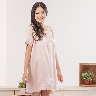 我在網路上搜尋之後,發現這一款產品【矜蘭妃】民族風刺繡蠶絲睡衣裙(粉色),看起來似乎很棒,絕對比之前穿過的款式好看(灑花!!)