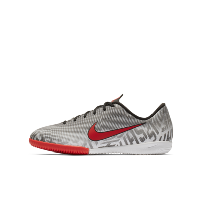 Nike Jr. Vapor XII Academy Neymar Jr IC 小/大童體育館/路面足球鞋採用合成皮革,讓新鞋能立即提供宛如第二層肌膚的服貼感受。紋理表面提供高速奔跑時的精準觸球感。細緻做工完美體現 Neymar 流暢、優美又充滿節奏感的巴西派打法。