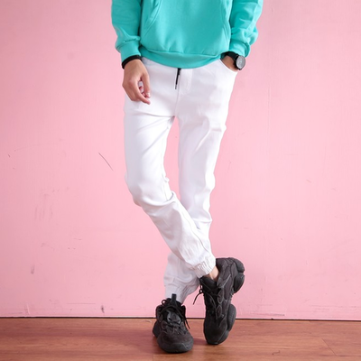 【最近流行商品】超彈力純色修身束口長褲(白色) 29152 限定折扣價