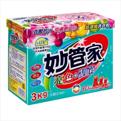 熱賣 經典【妙管家】超濃縮洗衣粉亮色加制菌(2kg+1kg)