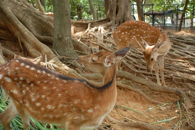 Robin趁機抱著沈小Q去靠近梅花鹿,