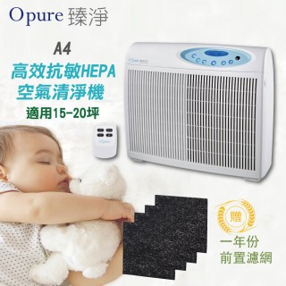 【推薦超實用家電】【Opure 臻淨】A4高效抗敏HEPA光觸媒抑菌DC節能空氣清淨機(加贈電暖器)-新款