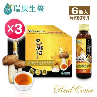 【本日刷卡折扣】【瑞康生醫】姬松茸複方系列-巴西蘑菇精淬黃金蜆精-常溫(6瓶-盒X3盒)-好評商品