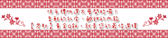 歲末年終,您準備好要用什麼迎接全新的年度了嗎?苦苦煩惱著給親戚朋友的伴手禮要送什麼才恰當嗎?大紅包裝,喜氣洋洋;外酥內軟的Q餅,更是象徵著眾多吉祥之意。【老耿】黃金Q餅,絕對是您年節最佳伴手禮首選!
