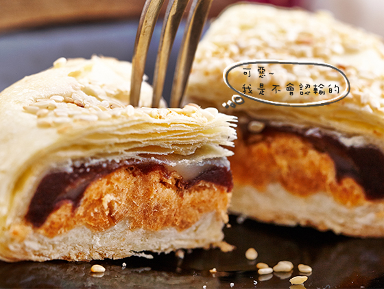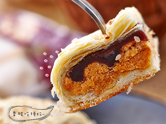 一口咬下,裡頭滿滿的肉鬆和紅豆,鹹與甜,看似衝突的兩種滋味,在一起時卻產生的意想不到的絕妙滋味!