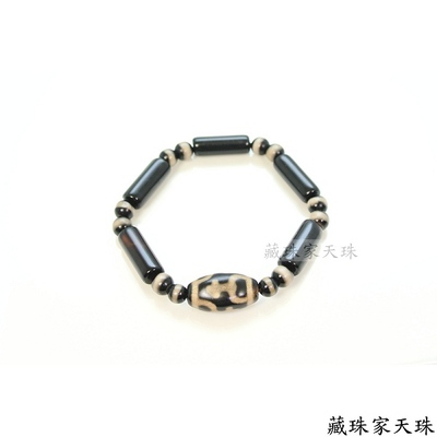 商品訊息描述: ???? 精選?18mm黑玉髓鑲蝕寶瓶天珠搭配6mm黑玉髓圓珠及19mm黑玉髓竹節的天珠手鍊,結合磁場與流行的概念造出色造型優美,質感特殊大方,而竹節更具有節節高升平安順利的意義,送人及配帶收藏皆適宜。