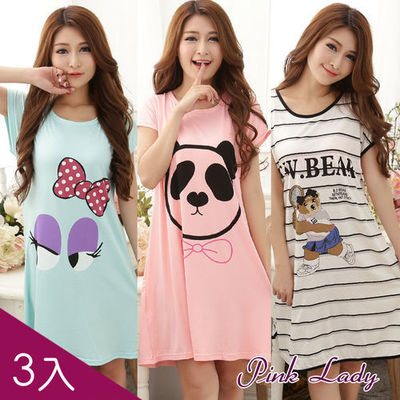 【PINK LADY】小熊×笑臉 可愛印花棉柔連身睡裙組(湖綠+粉+黃) 的產品介紹在下面,