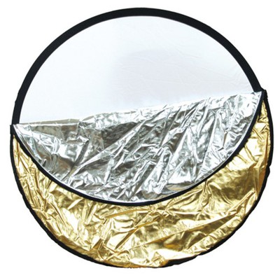 在日光條件下使用金色反光板補光。與銀色反光板一樣,它像光滑的鏡子似地反射光線,但是與冷調的銀色反光板相反,它產生的光線色調較暖。金色反光板更常用作為主光。在明亮的陽光下拍攝逆光人像,並從側面和稍高處把光線反射到被攝者的臉上。用這種反光板有兩個作用:一是可以得到能照射到被攝者臉上的定向光線,並且還能使被攝者臉部的曝光增加一擋;二是可以減少從背景到前景的曝光差別,這樣不會使背景嚴重地曝光過度。
