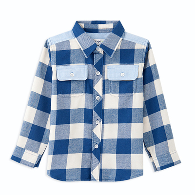 童款拼接發熱法蘭絨襯衫 (藍/米) 的產品介紹在下面〈(__)〉