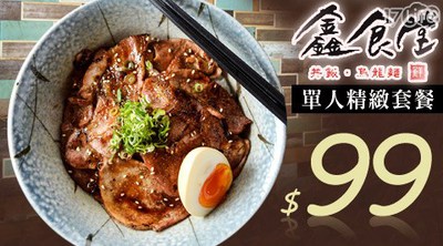 商品訊息簡述: 只要99元即可享用【鑫食堂燒肉丼飯 ? 烏龍麵《中正店》】最高價值150元單人精緻套餐:炙燒豬肉丼飯/泡菜豬肉丼飯(2選1)+每日例湯+小菜+飲料。