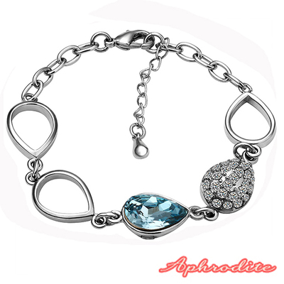 商品名稱 : 【Aphrodite愛芙晶鑽】甜美水滴藍寶石美鑽造型18K手環(白金色)