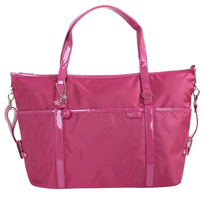 周年慶特賣-agnes b. 漆亮皮革邊手提/斜背包深桃紅/金拉鍊(大) 推薦