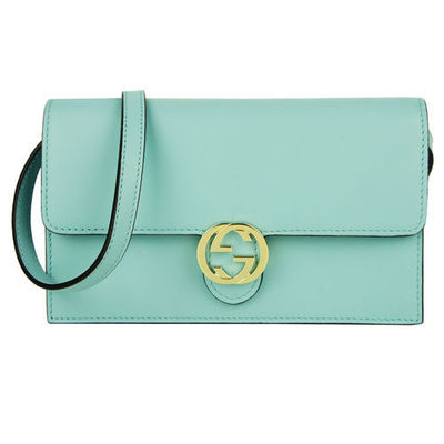 週年慶特會賣-GUCCI Exclusive Gucci 雙G釦式長夾-斜背包(水藍) 評價