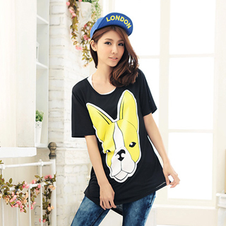momo購物-【S-7L熊衣褲語】亮眼趣味狗頭印圖長版上衣D258(橘、黑、綠L-XL)